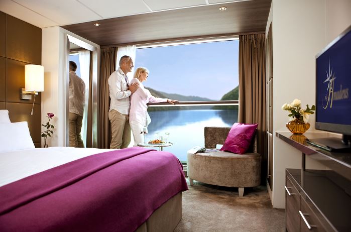 Unser Schiff verfügt über insgesamt 78 vergrößerte Standard-Kabinen (16m²), die auf dem Mozart- und Strauss-Deck mit einem neuen, innovativen Typ von französischen Balkonen ausgestattet sind: auf Wunsch kann die Panorama-Fensterfront, die über die gesamte Kabinenbreite geht, automatisch abgesenkt und somit als Balkon genutzt werden. Die 12 AMADEUS Suiten (24m²) verfügen darüber hinaus über einen begehbaren Außenbalkon mit Sitzgruppe, ein großes Panorama-Fenster und ein komfortables Bad mit abgetrennten WC und separater Dusche.